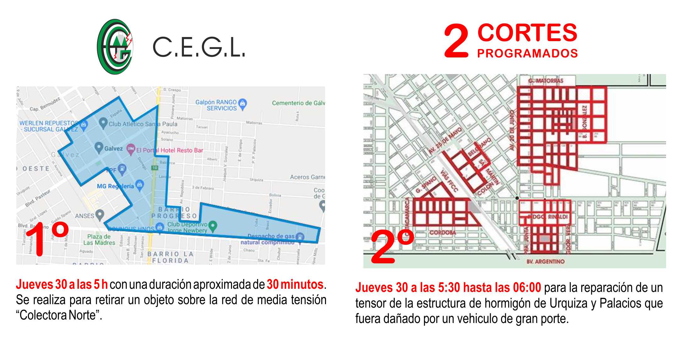 Comunicamos a nuestros asociados que, para realizar tareas de mantenimiento, el día 30/12/21 efectuaremos 2 cortes en el suministro de energía tal como de aprecia en la imagen adjunta.