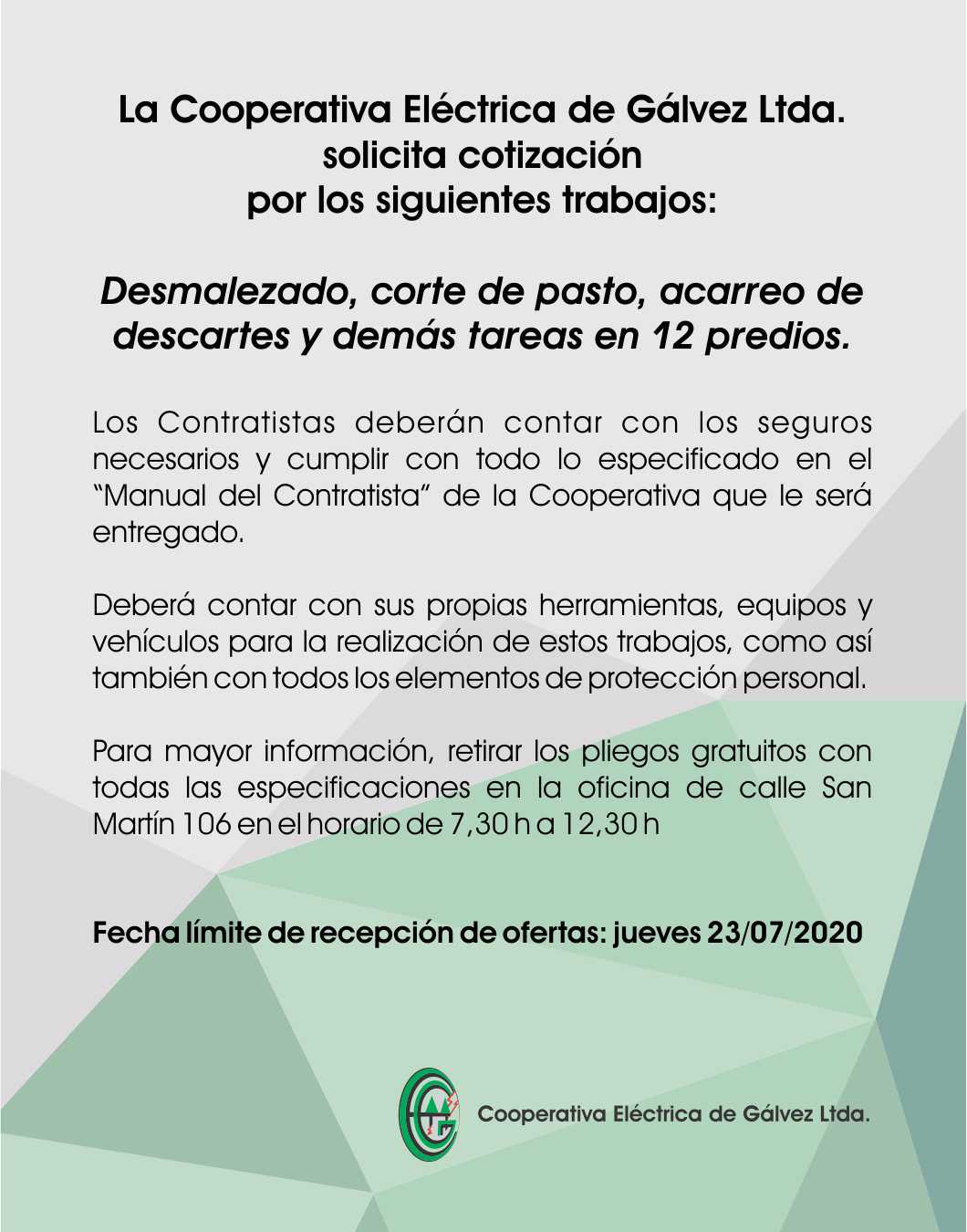 Fecha límite de recepción de ofertas: jueves 23/07/2020